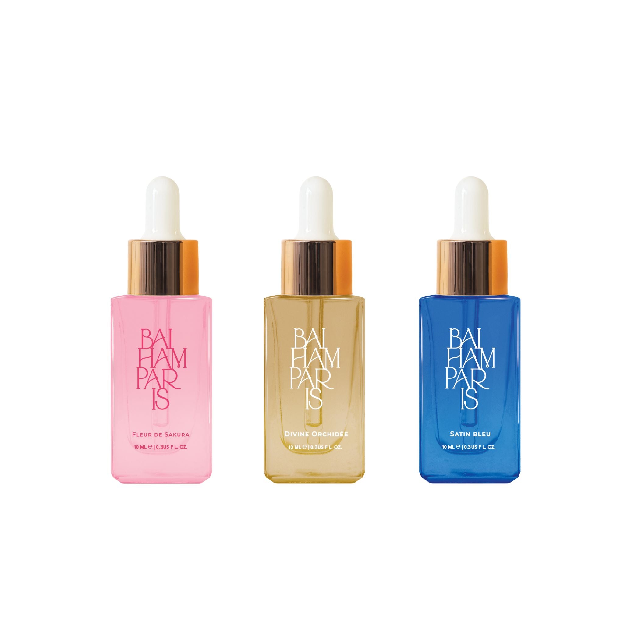10 ml chacun · Concentré de parfum unique · Créé à Grasse · Environ 3 mois d'utilisation